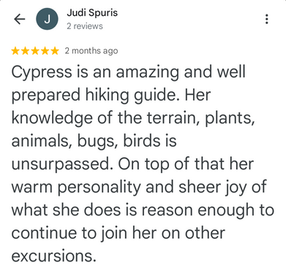 If you’re interested in custom nature tours, corporate outdoor events, or private educational experiences, reach out anytime at cypress@northstarnaturalist.com.